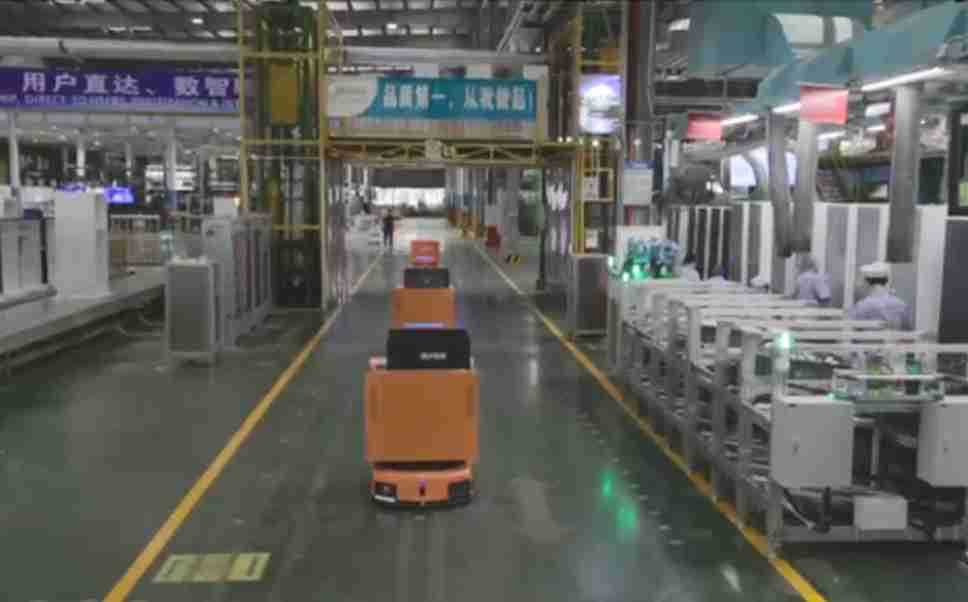 为车载冰箱物流配送打造的智能解决方案,,,,包含产中物流通过潜伏举升AMR搬运至线边,,,,产后成品物流智能仓储,,,流程包含产中物流智能齐套入库,,,,线边安灯叫料AMR智能配送至线边,,成品入库、、、、出库,,,通过无人堆高车机器人,,,智能仓储管理替代人工作业管理,,,,实现更高存储、、、、更高效率、、、更具柔性化的解决方案。。。